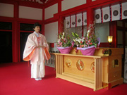 | 季節の花をお供えし、お祭りが行われます。 | ||